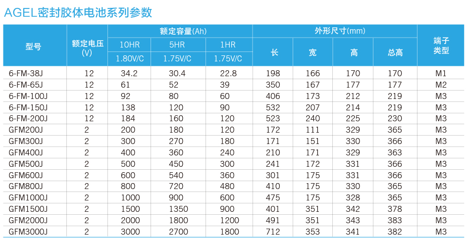 电池特性:胶体电池系列,浮充寿命可达10~18年