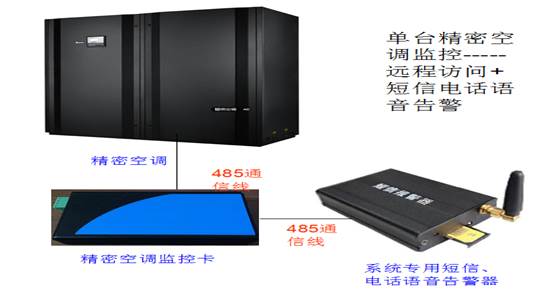 精密空调监控实现:通过精密空调设备提供的RS232或者RS485智能接口及通讯协议,采用485总线的方式采集并将精密空调的监控信号接入网络,由监控平台软件进行精密空调的实时监测。